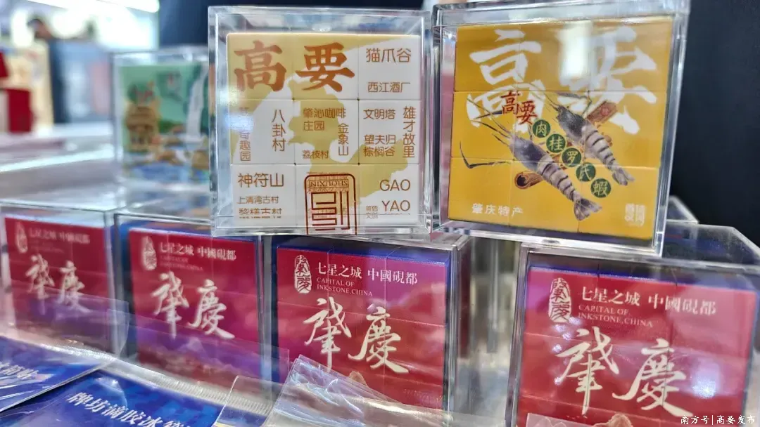 ▲ 在今年5月举办的第二十一届中国(深圳)国际文化产业博览交易会上,肇庆文创产品“高要魔方”展示了高要的特色景点及特产“高桂虾”。